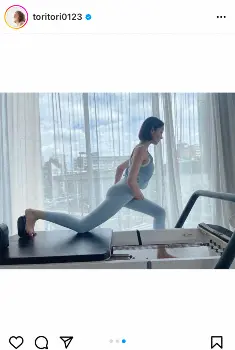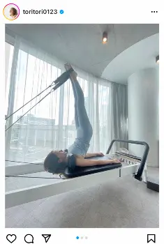 「コツコツ続けています、ピラティス。今日は体が重い日なので、中々思うように動けなかった~!そんな日に合わせたメニューをみのり先生が考えてくださいました」とつづり、体にフィットしたウエア姿でトレーニングに励む様子をアップした。