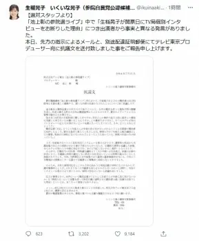 生稲晃子氏陣営が抗議文 池上彰氏のテレ東選挙特番に「貶めるため事実と異なることを放送」謝罪と訂正を