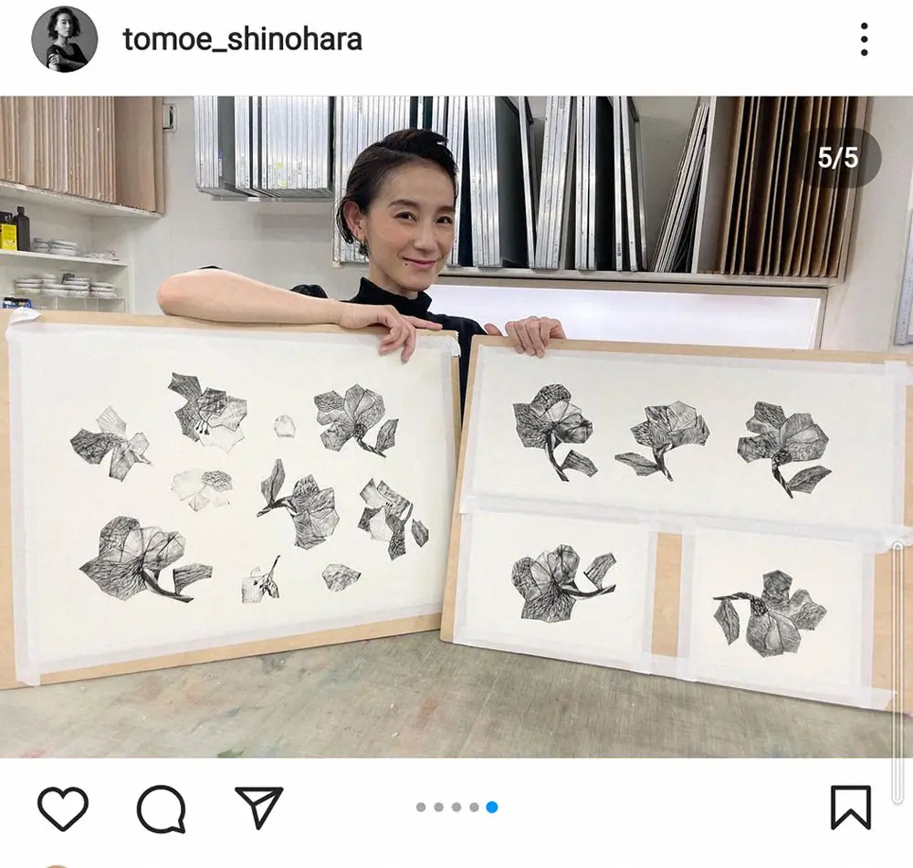 デザイナーでタレントの篠原ともえ(43)が12日、自身のインスタグラムを更新し、版画とカリグラフィーの作品を披露した。
