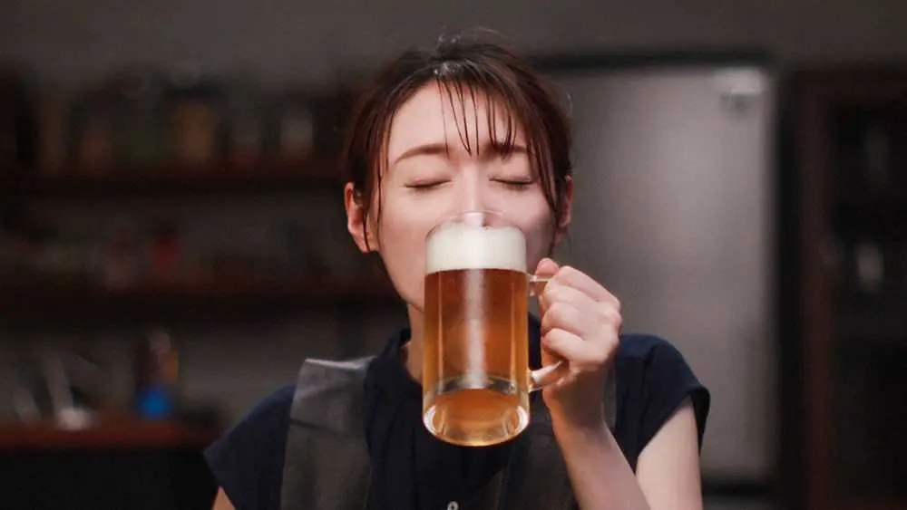 「撮影では本物のビールを飲んでもらっている。その時、心からおいしいと味わっている姿を表現したかった」。撮影はおつまみを作る場面から開始。飲むシーンは数時間後になるため、栗山は「早く飲みたい」と主人公さながら喉の渇きを訴えている。その結果「飲み終わった後の顔が素晴らしい」(松本氏)映像になった。