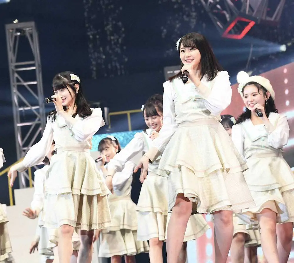 キャプテンの今村美月(22)は「このたび、花は誰のもの?のダンスリリックビデオが100万回再生を突破しました!」と笑顔。トライアングルセンターの1人、中村舞(23)は「皆さんの応援のおかげで、本当にたくさんの場所で披露する機会をいただけて感謝の気持ちでいっぱいです」、甲斐心愛(18)は「この夏もまだまだ皆さんと会える機会が増えていきそうですし、この勢いのまま年末にはたくさんの番組に出演機会をいただけるよう頑張ります」と、NHK紅白歌合戦など年末の音楽特番への出演を目指すことを誓った。