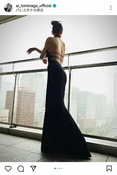 モデルで女優の冨永愛(39)が15日、自身のインスタグラムを更新。背中が露わになった黒いドレス姿を披露した。