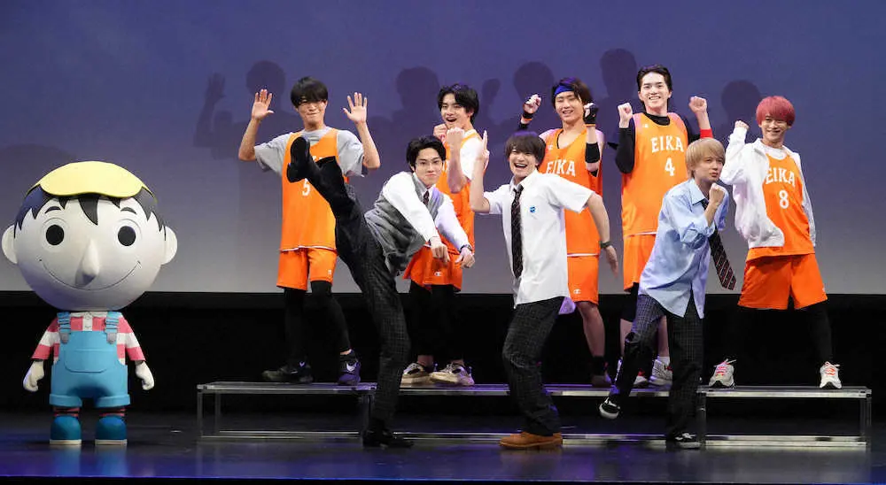 同名の人気漫画を実写化。会見中では、メンバーの秘密を暴露しながらバスケットボールのフリースローをする対決を実施。井上は浮所飛貴(20)について「人が多いところを歩く時も、バレたくて絶対に変装をしない」と明かした。浮所は「確かにバレたい気持ちも少しある」と認めつつ「普段から変装しないんですよ!」と釈明した。