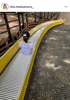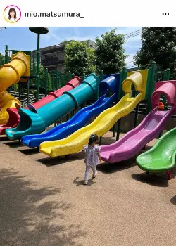 「この日は、娘にリクエストされた公園へ“いろんないろのすべりだい”と“なが~いすべりだい”があるのが好きなんだそう」と滑り台で遊ぶ娘の姿など、オフの日のほのぼのとした様子を公開した。
