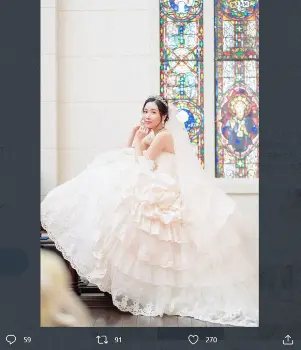 また「結婚式では、大好きな友人に祝福していただきとても幸せでした」と結婚式も済ませたことを報告し「これからも芸能活動は引き続き継続をしていきますので、どうぞ温かく見守ってください。今後ともよろしくお願い致します」と伝えた。
