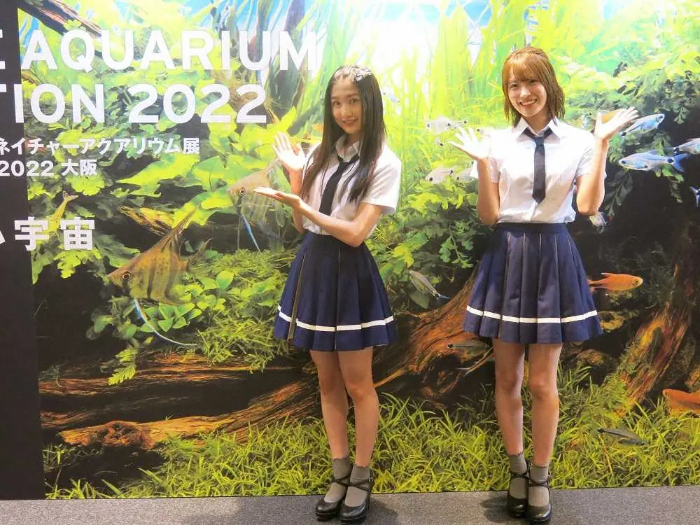 「ネイチャーアクアリウム展 2022大阪」をPRするNMB48小嶋花梨(右)、塩月希依音