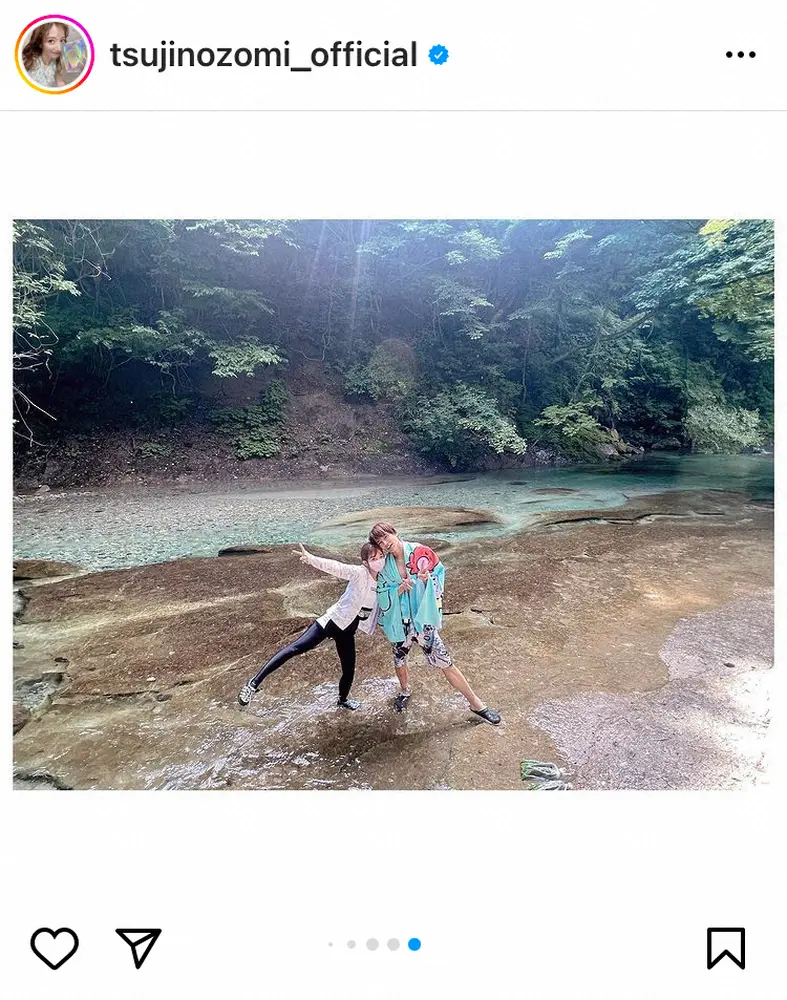辻はインスタグラムで「今日は綺麗過ぎる川へ…最高だった」と家族ショットを披露。ブログでも「綺麗過ぎません??もう感動した 子ども達も大興奮で水温的にはけっこう冷たかったけど 子どもは凄いね!!!!!!泳いでた 私はお尻でギブって事で写真撮っときました笑。しかし綺麗!!本当に綺麗!!!!最高の場所でした」と興奮気味につづった。