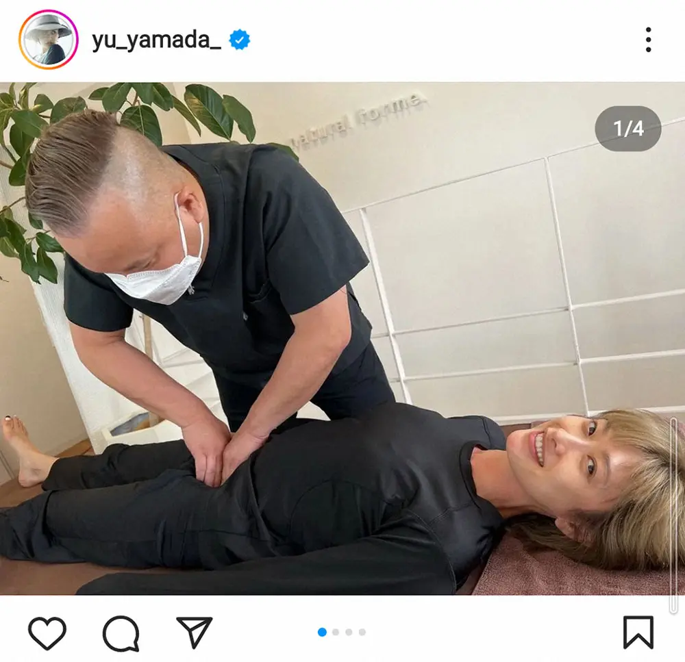 山田は施術中の写真を投稿し「ゴッドハンドに出会いまして。はじめましてで、体が変わりました」とつづり、施術後の写真も投稿。もともとスレンダーな山田だが、引き締まったウエストを披露し「ウエストがキュッと閉まりお尻がクッと上がりました」とした。