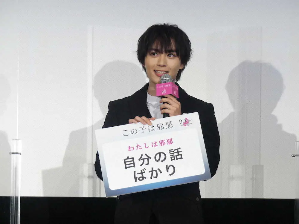 なにわ男子の大西流星(20)が25日、都内で映画「この子は邪悪」(監督片岡翔、9月1日公開)の完成披露試写会に出席した。