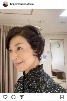 鈴木は「和彦の母、青柳重子でございます。くるくるヘアは美容院でセットしていただいてますのよおほほほ」とユーモアたっぷりにつづり、黒を基調とした上品な水玉のトップス姿でニヤリと笑うショットをアップ。