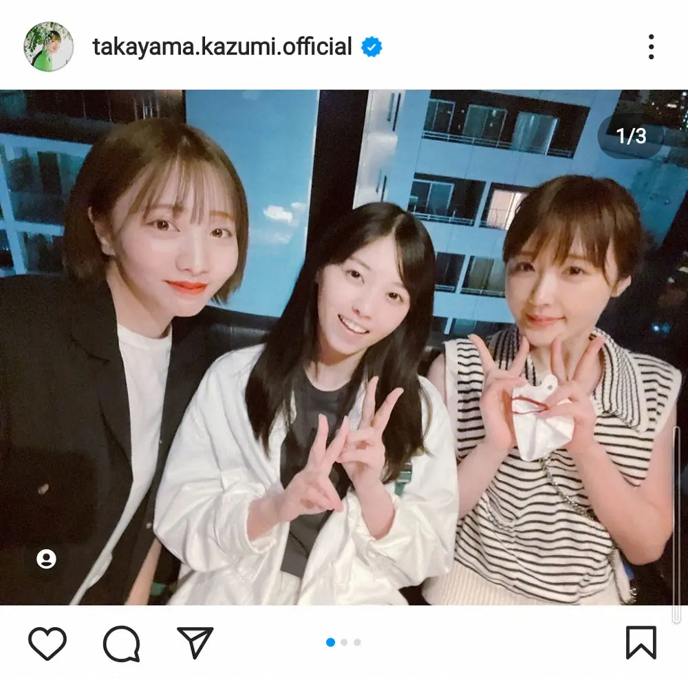 元乃木坂46の高山一実(28)が26日、インスタグラムを更新。西野七瀬(28)、能條愛未(27)の元乃木坂46メンバーとの3ショットを公開した。