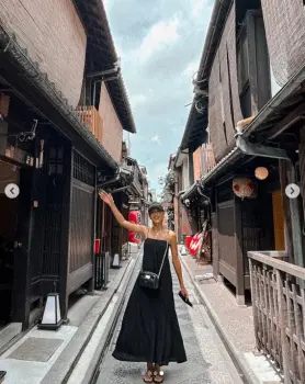 みちょぱ 京都での黒ワンピ姿公開に「スタイルぃぃからワンピが似合う」「黒コーデ可愛い」