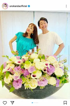 神田うの 弟の「ハマカーン」神田伸一郎と2ショット披露 「家族で父の喜寿のお誕生日会」
