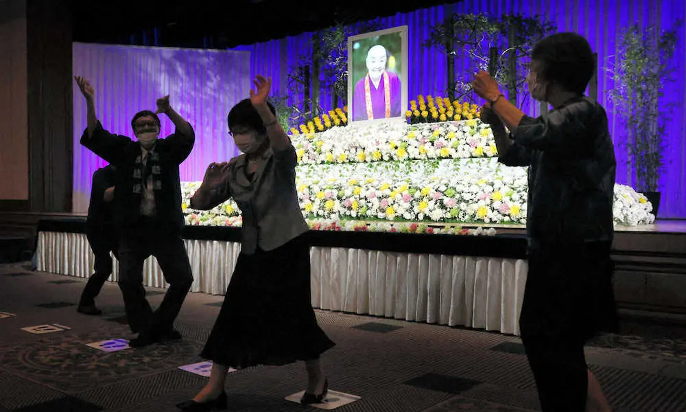 参列者は、篠山紀信氏(81)が撮影した遺影にカーネーションを献花。あいさつした林氏は「先生の最大のホラは“作家は死んだら本なんか消えて忘れられる”とおっしゃったこと。全集が出版されました」と涙声。締めは生前の寂聴さんの要望により、祭壇の前で6人が阿波おどりを披露し、にぎやかに別れを惜しんだ。