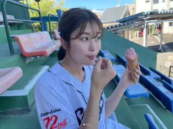 「佐世保記念 九十九島賞争奪戦G IIIのプレゼンターを務めさせていただきました」と佐世保競輪場を訪れたことを報告。「競輪場でユニホームを着れるとは思わなかった」とつづり、“競輪ユニホーム”でアイスクリームを食べている写真やワンピース姿の写真をアップした。