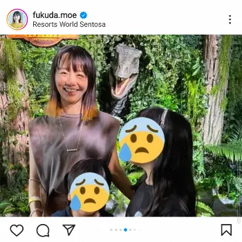 「シンガポールのユニバーサルスタジオ内のジュラシックワールドダイニングで夕食を食べた時の写真」と記すと、黒の半袖シャツを着た中田と長女、ベージュのノースリーブトップスを着た自身がテーブルに着席している3ショットをアップ。長男、長女と自身の3ショットも投稿すると、「ジュラシックワールドコンセプトの世界観やお料理が楽しめました。ヴェロキラプトルとのミート&グリートがあって子供達冷や汗 最後は巨大なT-REXも登場(でも遠目から) 夕ご飯もアトラクションの一つみたいでめっちゃ楽しかった!!」とつづった。
