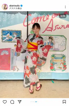 須田の浴衣姿にフォロワーからは「『akarin.』の浴衣姿は昔から、大好物です」「超絶可愛い~ モチロン大好きです」「一緒に祭り行きたいね めっちゃ似合ってる」「最高!!」「最強です」「浴衣美人 亜香里ちゃん好き 小股の切れ上がった、うなじも綺麗な美人さん 浴衣の選択も素敵だね」といった反響が寄せられている。