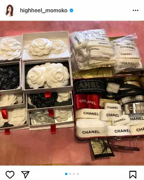 「お菓子の可愛い空き箱やカンカンには、色んなブランドのリボンが」とつづり、シャネルやディオール、グッチなどのリボンが収納されたボックスを公開。続けて、「千円のジージャンがこんなに可愛くなりました」とし、シャネルのリボンを使ってリメイクしたジージャンを披露した。