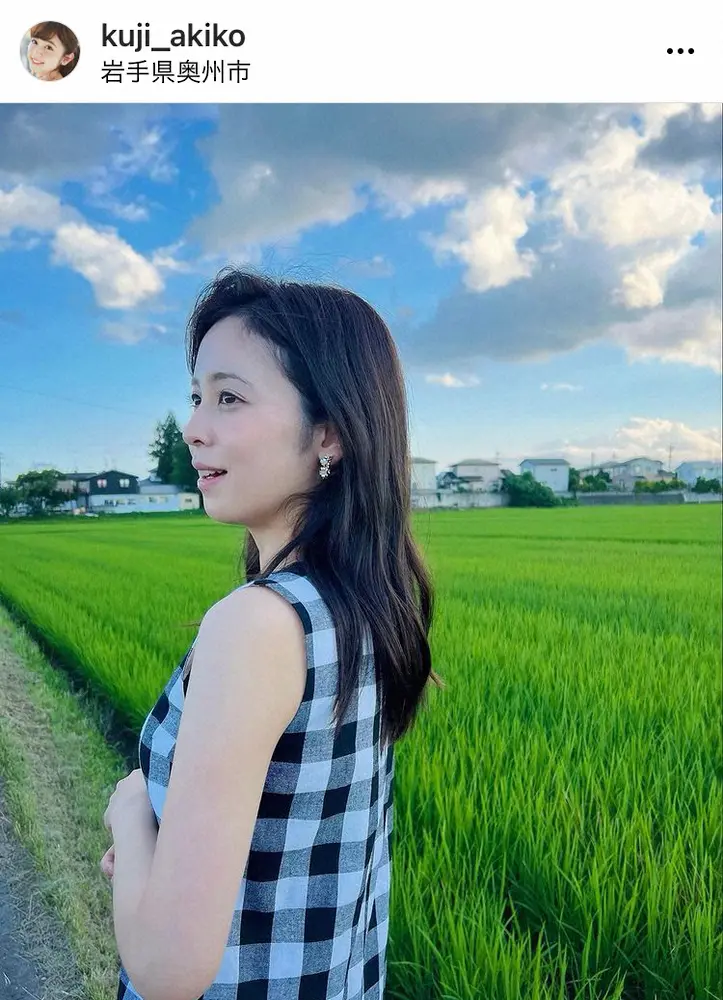 バスケットボール日本代表でNBAラプターズの夫・渡辺雄太(27)と結婚した元フジテレビアナウンサーでタレントの久慈暁子(28)が1日、自身のインスタグラムを更新。地元である岩手県奥州市の田んぼの中での爽やかなショットを公開した。