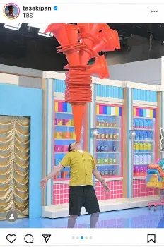 番組では以前にパフォーマーがギネス世界記録の38個を達成。その際に30個を乗せられるのは「世界でも3人しかいない」との話が出たことで、川島は田崎に向かって「世界で4人目ですよ」とビックリ。その後、38個に挑戦し、6秒間は保ったが、バランスを崩して世界記録は達成ならなかった。