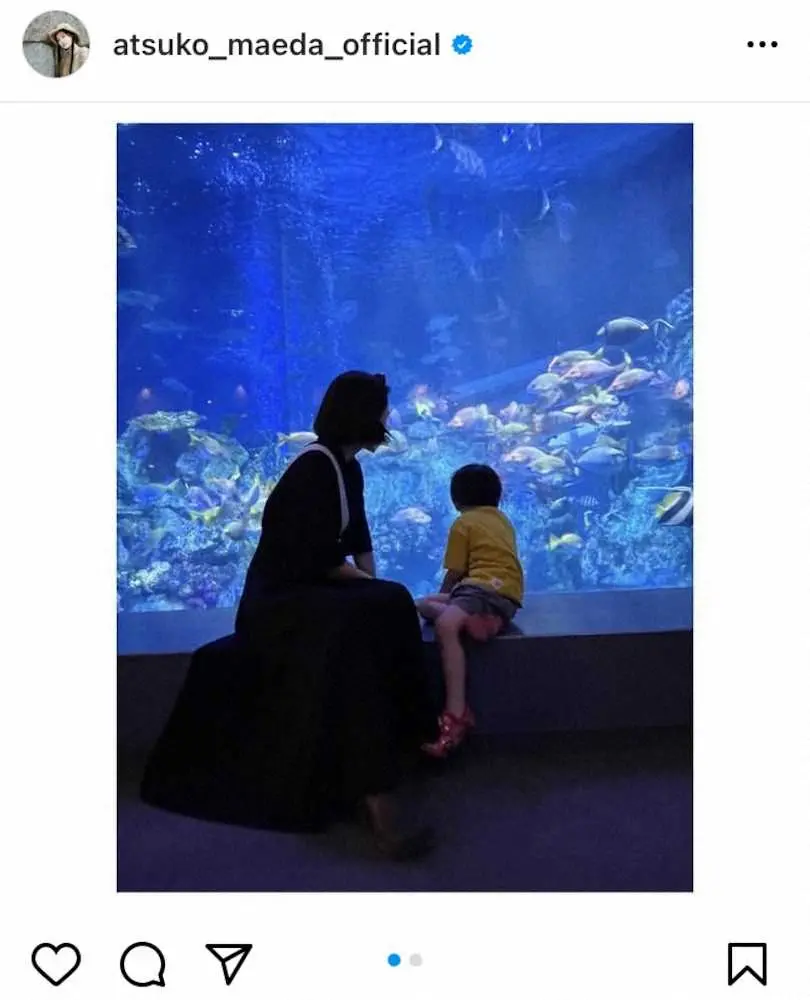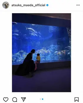 2019年3月4日に第1子となる長男を出産し、現在は子育てをしながら仕事に励んでいる前田は「夏ちょこちょこ満喫できてます」「#水族館 #伊勢」とコメントし、水槽の前に腰掛け、魚を眺めている自身と息子の後ろ姿を公開。