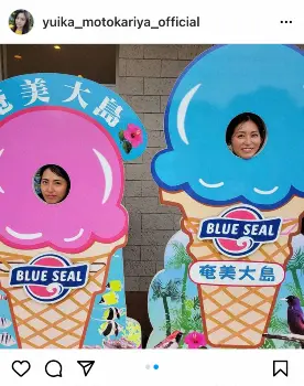 「本日発売の週刊FLASH に、9/8発売の写真集『私。』を独占公開して頂いてます。ぜひご覧ください」とアピール。「写真は、奄美大島で写真集撮影終了後に、妹のリイナとブルーシールアイスを」と姉妹でアイスを食べる仲良し姉妹の姿を披露。ブルーシールアイスの顔出しパネルの写真も添えた。