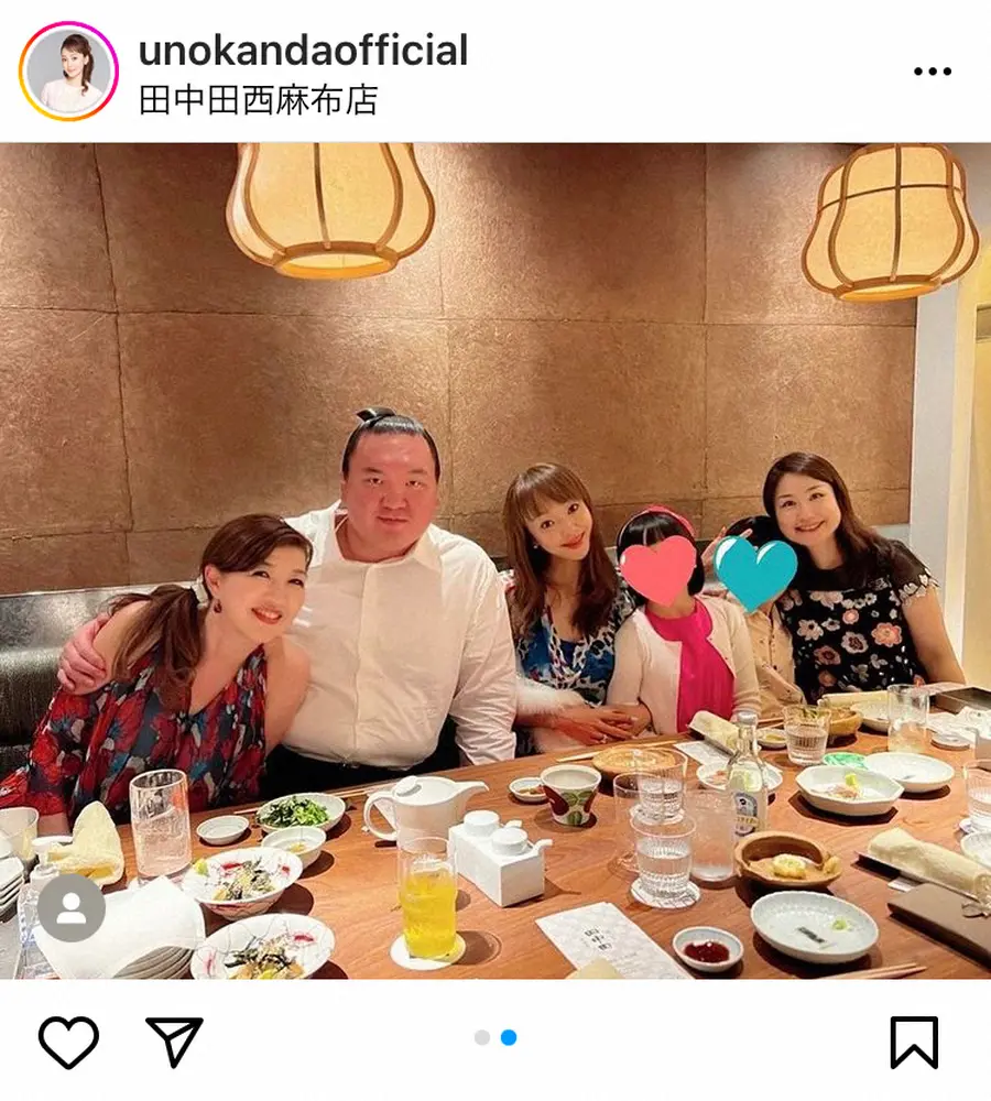 タレントの神田うの(47)が3日、自身のインスタグラムを更新。元横綱・白鵬の宮城野親方(37)らとの会食を報告した。