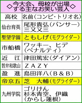 コンビで母校が甲子園出場のモグライダー 後輩球児にWエール ともしげは聖望学園、芝は帝京五