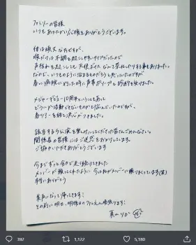 真山は、自身のツイッターを更新し、直筆でコメントを投稿。「体は頑丈な方ですが、喉だけは不調を起こしやすいタイプだったので 声枯れを起こしても天使ボイスなんて茶化したりする事もありました。なので、いつものように治まるものだろうと思っていたのですが 春に病院に行った時に声帯ポリープと診断を受けました」と、経緯を説明した。