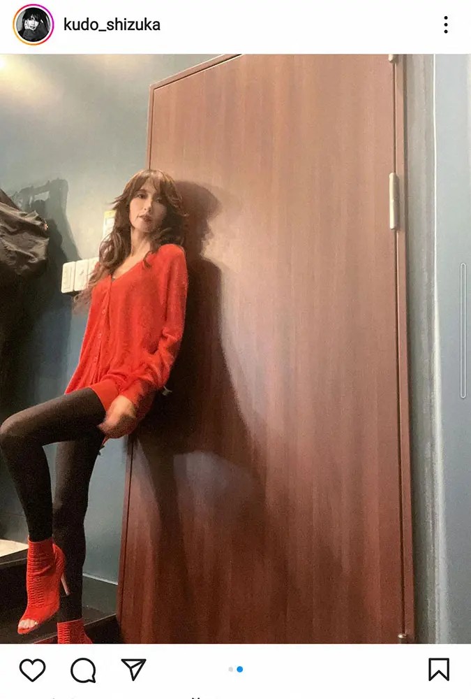歌手の工藤静香(52)が5日、自身のインスタグラムを更新し、真っ赤なニットとブーツ、レギンスのセクシーショットを披露した。