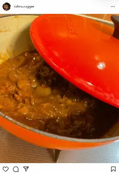 「妻が帰ったら一緒に食べようと夕方作り置きして出かけて行ったハヤシライス」と美味しそうなハヤシライスが入った鍋のフタを開けた画像を投稿。「腹減った…まだ帰ってこない うーん ちょっと見るだけ ウワーうまそうな匂いが鼻をつく うーんここは我慢だ 誓います 絶対につまみ食いしない事を」と自制しながらも「フーまだかなぁ #ハヤシライス #妻の帰りが待ち遠しい #榊原郁恵」と空腹もあって榊原の帰りを待っている様子をつづった。