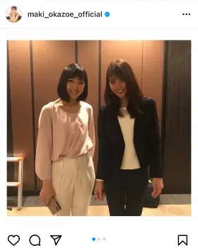 フォロワーからは「美女お二人っ!」「素敵なツーショット」「最強コンビですね」「パンツスーツも似合います」「うわ!!最強のツーショット」「2人とも素敵ですね」などのコメントが寄せられていた。