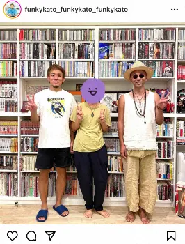 加藤は「夏休み最終日。元DJケミカルこと田野倉くんとモンちゃんが家に遊びに来てくれました。3人で『告白』や『ヒーロー』のMVを見て懐かしんだりしてました」とつづり、「FUNKY MONKEY BABYS」として活動していた3人の集合写真をアップ。DJケミカルはお馴染みの手を合わせるポーズを披露し、加藤とモン吉もピースで再会を喜んだ。