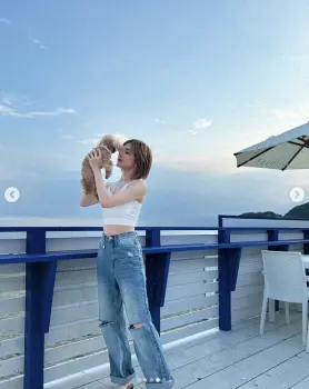 “腹筋美女”ゆんころ ブラトップ&デニム姿の2ショット公開に「絵になるね~」「めちゃ憧れ」