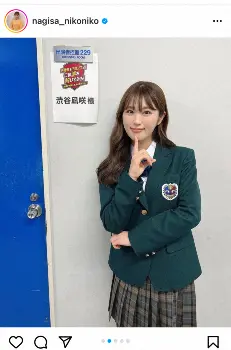 NMB48の渋谷凪咲(25)が10日までに、自身のインスタグラムを更新。制服姿のオフショットを披露し反響を呼んでいる。