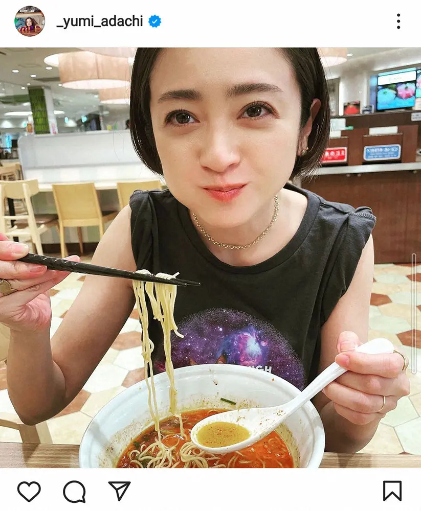 安達祐実 フードコートで食事!?「大好き」辛い麺食べる姿に「美味しいって顔してる」の声
