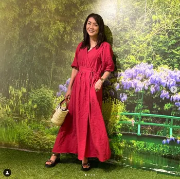 “奇跡の56歳”前田典子 胸元V開きの真っ赤なワンピ姿披露に「お美しい」「凄くお似合い!」