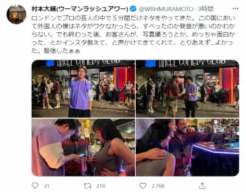 ウーマン村本 英ロンドンでピンネタ披露 「とりあえず…よかった。緊張したぁぁ」