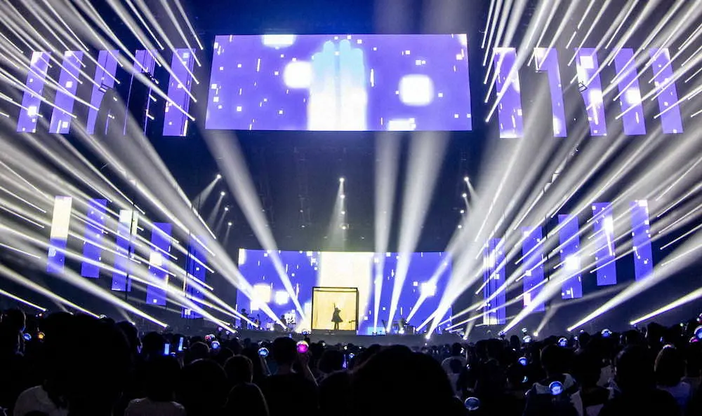 同じ「歌い手」と言われるアーティストのライブを見て以来、夢見てきたさいたまスーパーアリーナでの公演。まばゆいほどの映像が映し出されるスクリーンをバックに、時に長い髪の毛を振り乱し、バレエダンサーのように舞い、仰向けに倒れ込んで歌う場面も。「どうか私を目に焼きつけてください」と呼びかけ、独特の低音ボイスと抑揚をつけた歌い方で「新時代」など最新アルバム「ウタの歌」の収録曲や「うっせぇわ」など全24曲を披露した。