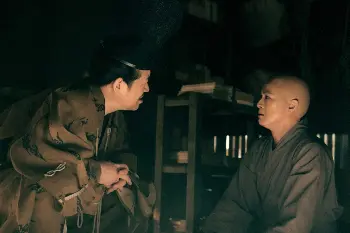 大河ドラマ「鎌倉殿の13人」第30話。比企能員(佐藤二朗)を詰問する北条義時(小栗旬・右)(C)NHK