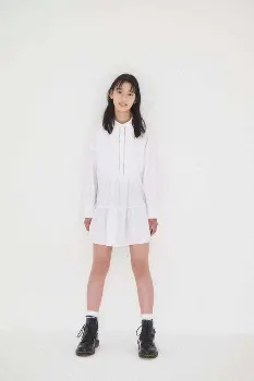 「普段は学校の男子たちとよく外で遊びます。水鉄砲を撃ち合うのが大好き!」というアウトドア派。「撮影のために日焼け止めを塗ったりパックをつけたり、初めてスキンケアに挑戦しました」と楽しそうだ。
