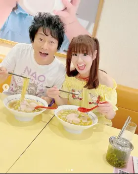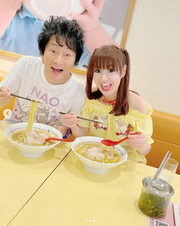「奈良でロケ帰りに久しぶりに『どうとんぼり神座』ラーメンさんへ~」とつづり、黄色いショートパンツのセットアップ姿の写真や、かつみとラーメンを仲良く食べている写真などをアップ。ハッシュタグで「同棲時代からの思い出のお味~」「あのころのジェットコースターのような怒涛の日々を思い出しますの巻~」などと添えた。