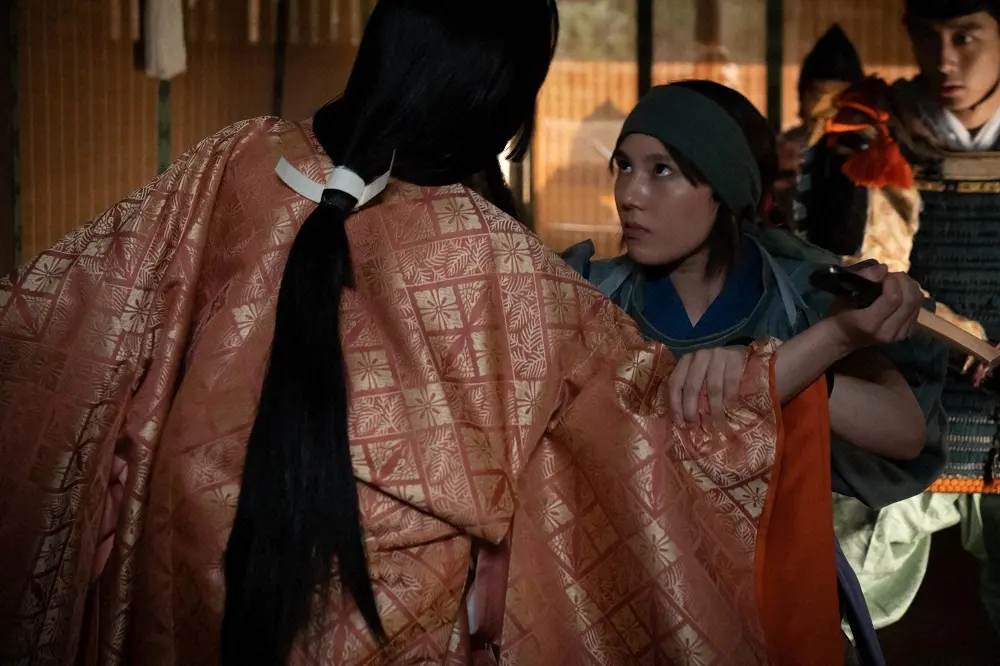 大河ドラマ「鎌倉殿の13人」第31話。せつ(山谷花純)を一撃で仕留めるトウ(山本千尋・右)(C)NHK