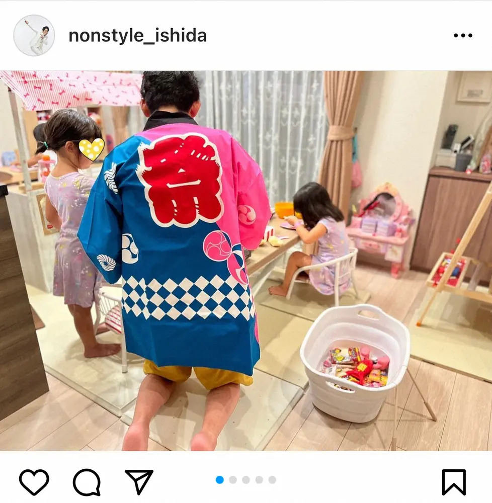 「NON STYLE」の石田明インスタグラム(@nonstyle_ishida)から ノンスタ石田 自宅で夏祭りを再現!娘たちと楽しむ姿に「お父さん素敵」… ギャラリーで見る この記事のフォト 2022年08月16日の画像一覧 もっと見る 2022年08月16日の画像をもっと見る