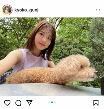 日テレ・郡司恭子アナ 「全然上手く撮れない」トイプードルの愛犬との2ショットに「2人ともかわいすぎ」