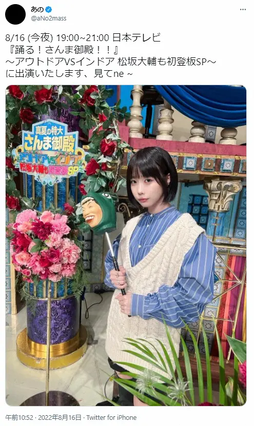 これを聞いたあのは「めちゃめちゃネットで買い物しますね。何十万も使っちゃうんですよ。古着以外の服はだいたいネットショッピングで」と明かし、MCの明石家さんまに驚かれていた。