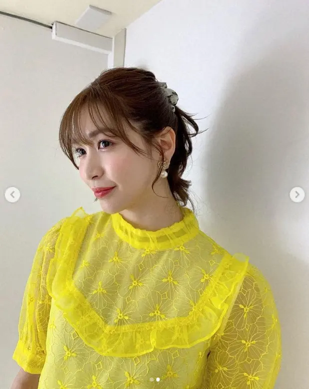 タレントの大島麻衣(34)が19日までに自身のインスタグラムを更新。涼し気な黄色のワンピースドレス姿を披露した。
