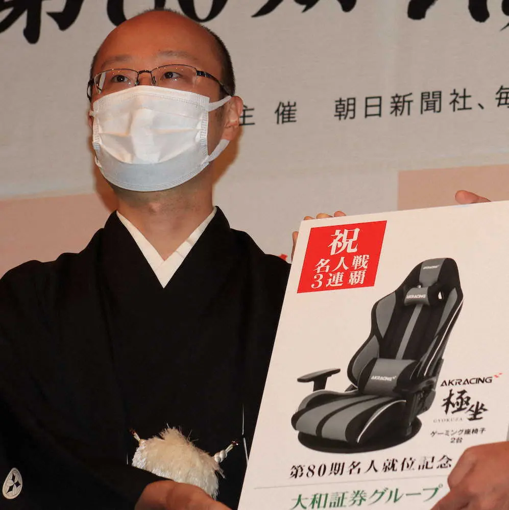 囲碁の井山裕太4冠(33)もゲストとして登壇する和やかなムードの式中、記念品のゲーミングチェアを受け取り「パソコンの前で座っていると腰にくる。その負担が軽減出来そう」と喜んでいた。