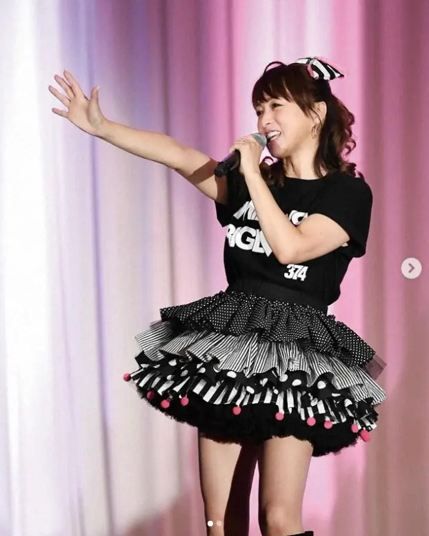「9/19(月祝)開催の渡辺美奈代バースデーライブのチケット販売中です!」とアピールし、フリフリミニスカート姿でのステージショットやバックショットをアップした。