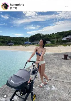 石橋穂乃香 ビキニ姿で5月誕生の我が子のベビーカーデビュー報告「産後間もないのにスタイル良い」の声